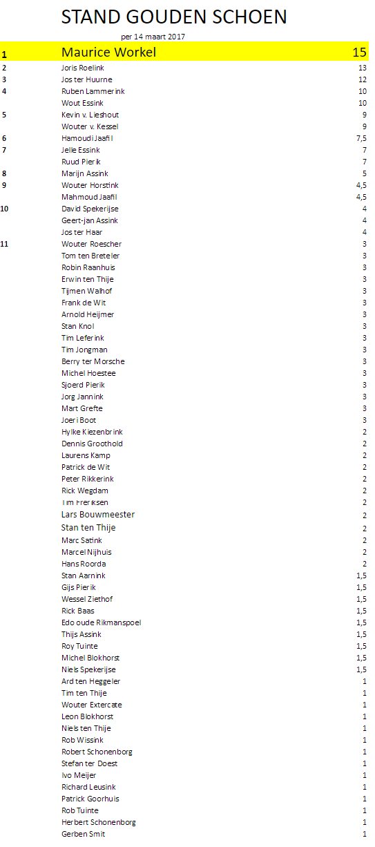 Gouden Schoen: WVV’34 2 pakt koppostitie, Maurice ook