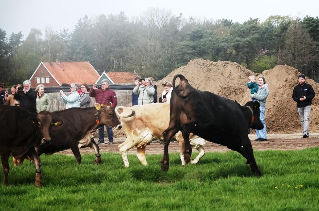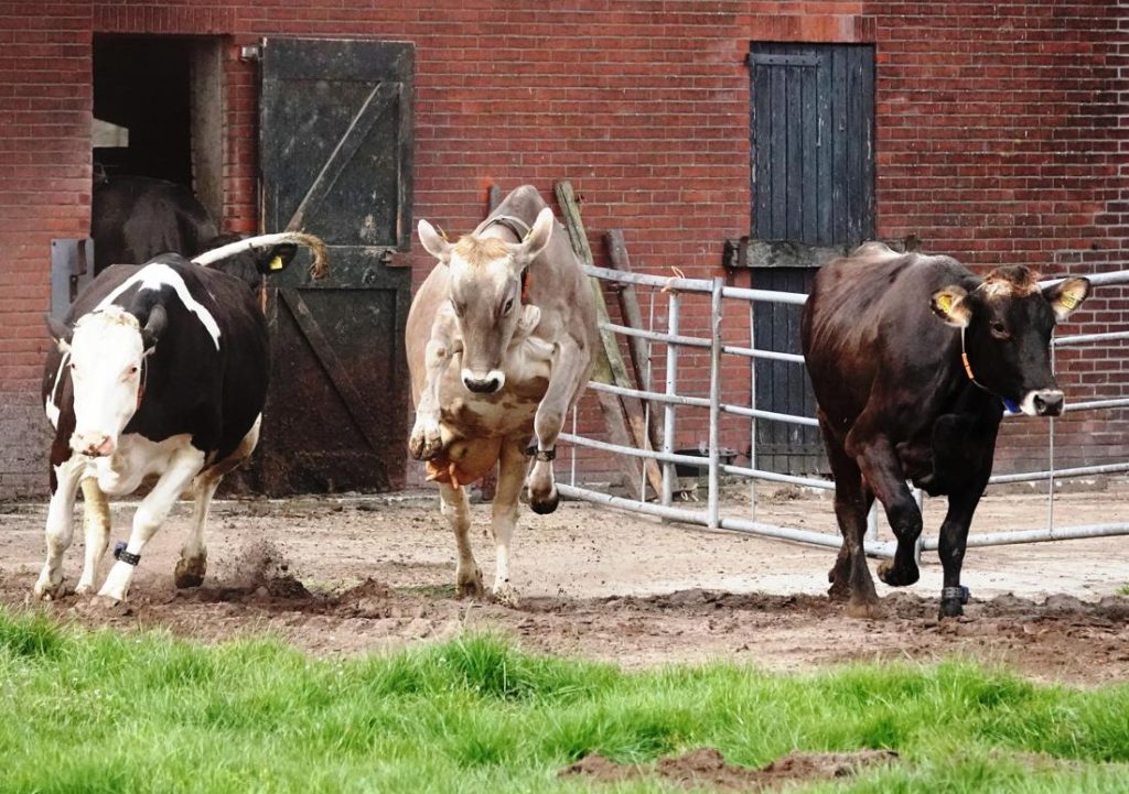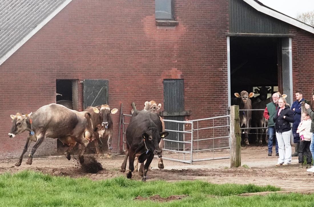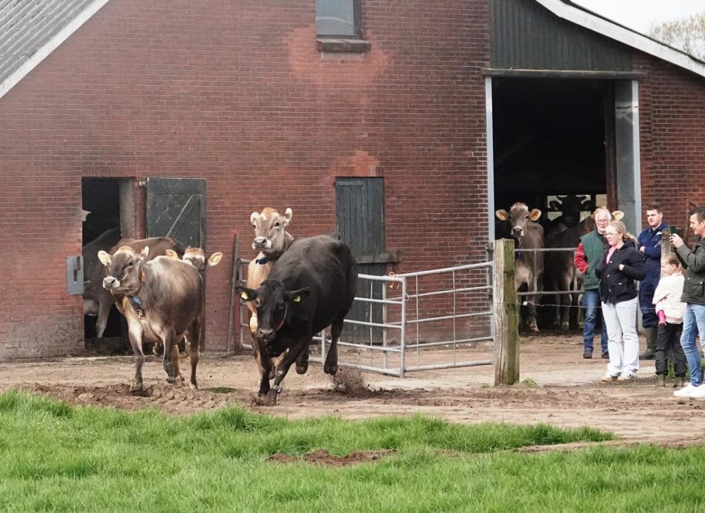 Wie er wel eens bij is geweest, weet dat dit geen alledaags tafereel is. Zodra de deuren opengaan, rennen en springen de koeien enthousiast de wei in. Een vrolijk gezicht dat in de volksmond bekendstaat als de koeiendans. Het is ieder jaar opnieuw een klein feestje om te zien.