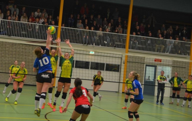 De Hengeveldse volleybaldames hebben in een ware thriller, na een 0-2 achterstand in sets de wedstrijd alsnog naar zich toe weten te trekken. (KLIK HIER VOOR HET FOTOALBUM) Haaksbergen, met 24329 inwoners ten onder tegen Hengevelde dat volgens Wikipedia 2.077 inwoners telt. Alsof het de Engelse Premier Leaque betrof: oorverdovend lawaai vanaf de tribune van beide kampen, de teams binnen de lijnen strijdend voor ieder bal. De eerste set leek Cupido lang mee te doen, maar uiteindelijk ging men met 19-25 de boot in. Hoe anders betrof het in het tweede bedrijf, dat was even slikken. In de cruciale fase leken de groen gele dames te bezwijken onder de spanning en maakte (te) veel onnodige fouten, al waren ze er een paar keer dichtbij. Ook set ging naar Havoc en wel met 29-31! Dit was meteen het laatste wapenfeit van de Haaksbergse dames: “Bergie Bergie toch” zouden zo maar de legendarische woorden van Mart Smeets kunnen zijn na de wedstrijd van vandaag.:
