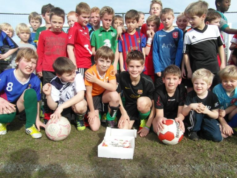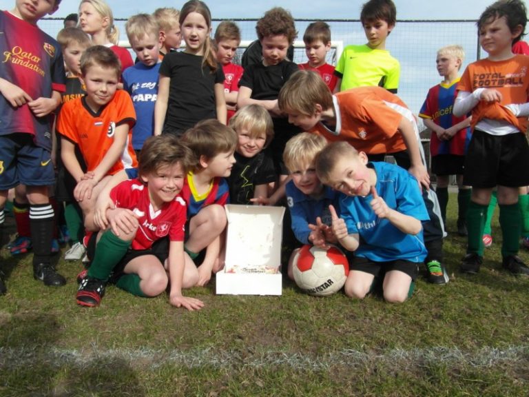 Met een hoofdprijs als taart in het achterhoofd werd er fel getreden om het top product van bakkerij Nollen op de zes speelvelden. De uiteindelijke winnaars bij de twee verschillende leeftijd categorieën waren: