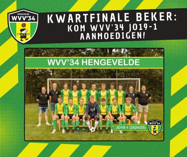 Kwartfinale Beker: Kom WVV’34 JO19-1 aanmoedigen