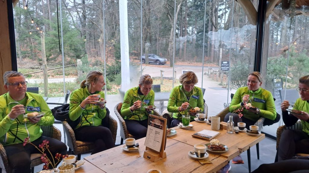 Het hoogtepunt van de training was dat Monique Grefte als eerste aanwezig was. Na afloop genoten de deelnemers van koffie en gebak bij De Wieger.