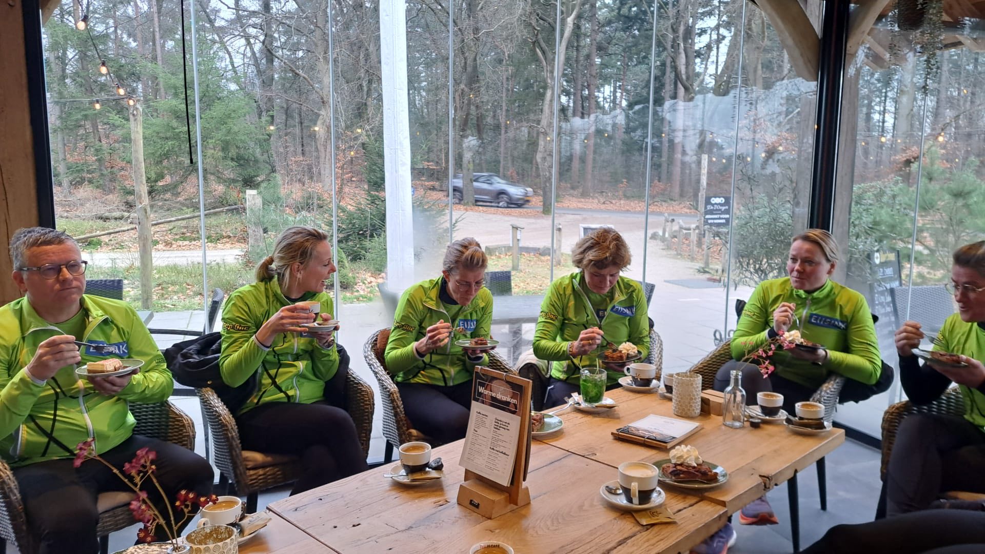 Het hoogtepunt van de training was dat Monique Grefte als eerste aanwezig was. Na afloop genoten de deelnemers van koffie en gebak bij De Wieger.