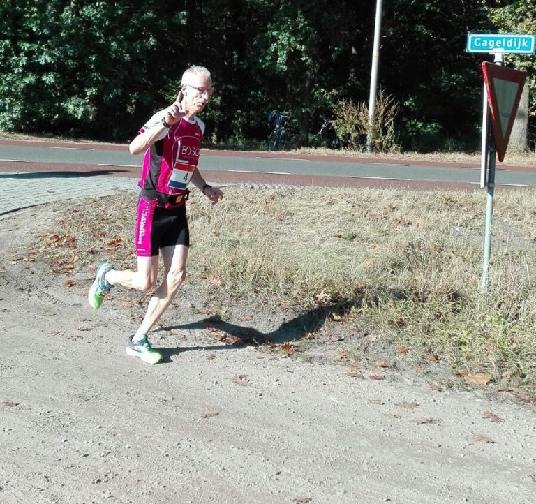 Inmiddels heeft René Renate ook kunnen lossen, maar Renate dreigt weer te kunnen aansluiten. Zodra René dit in de smiezen krijgt, zet hij een tandje bij. Renate wordt op achterstand gelopen, maar Linda kan hij niet meer inhalen. Een leuke strijd! Bij 21 kilometer denken we allemaal de finish te zien. Moe en voldaan moeten we nog….. één kilometer. En daar is ie dan: de finish. Na 22 kilometer.