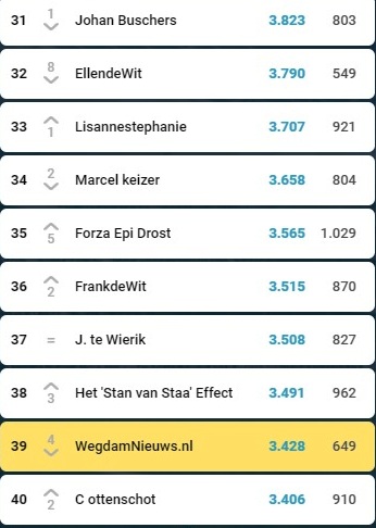 En (de) Keizer zelf? Die is terug te vinden op plek 34: Ik heb nog zo mijn best gedaan voor een goed team!”…..