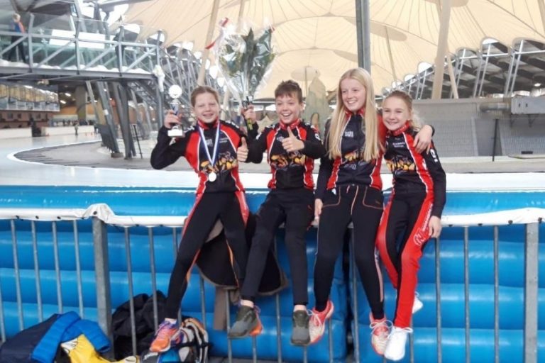 Veerle, Fae, Sam en Maud van IJSCH uit Haaksbergen werden afgelopen zaterdag uitgenodigd voor de 32e editie van het Veldwachter Hans Internationale pupillen toernooi in Deventer. Dit jaar deden er maar liefst 24 verenigingen mee aan dit grootste pupillen toernooi van Nederland en er stonden zelfs pupillen uit Duitsland en Polen aan de start. De ABC-pupillen Fae, Veerle, Maud en Sam gingen goed van start, er werden zelfs een aantal mooie persoonlijk records gereden. Het toernooi werd afgesloten met een marathon over 900 meter. Maud Blokhorst viel in de prijzen door op alle individuele afstanden te winnen inclusief de afsluitende marathon. Een knappe prestatie van het hele team IJSCH! Tijdens voorgaande edities deden schaatsers mee als mee als Mark Tuitert, Stefan Groothuis, Jan Smeekens, Ronald en Michel Mulder, Lotte van Beek en Carlijn Achtereekte.
