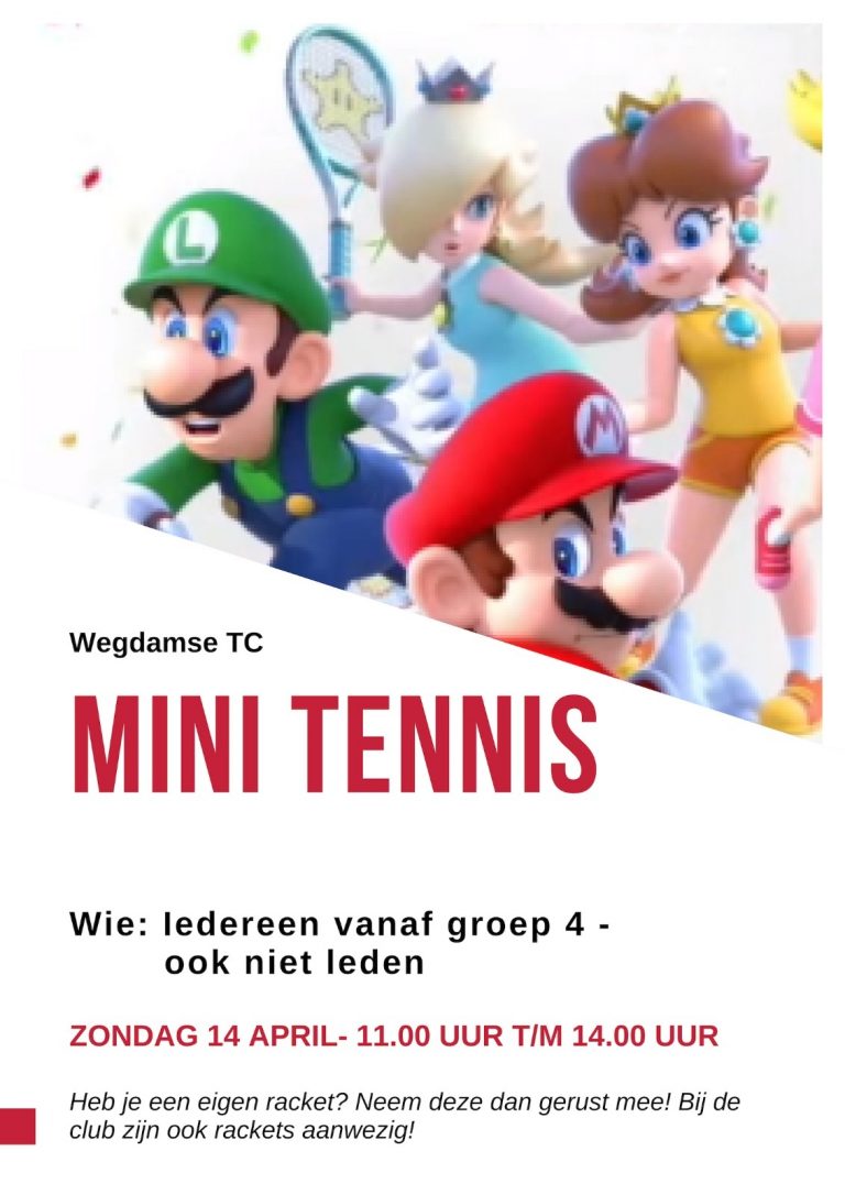 NIEUWE DATUM! Het minitennis toernooi zal op zondag 14 april plaatsvinden van 11.00 uur tot 14.00 uur! Laten we hopen dat de weergoden ons ditmaal wel meezitten.