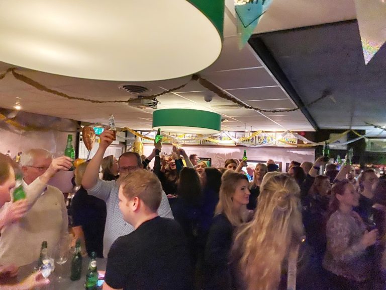 De festiviteiten na het niet bestaande officiële gedeelte zorgden wel voor de juiste beleving! DJ Kasper Put wist de aanwezigen te vermaken met een bingo met ludieke prijzen en met een limbo wedstrijd met een zinderende finale tussen Joyce Assink en Sanne Spijkerman met de laatstgenoemde als winnares; enthousiast aangemoedigd door de aanwezigen.