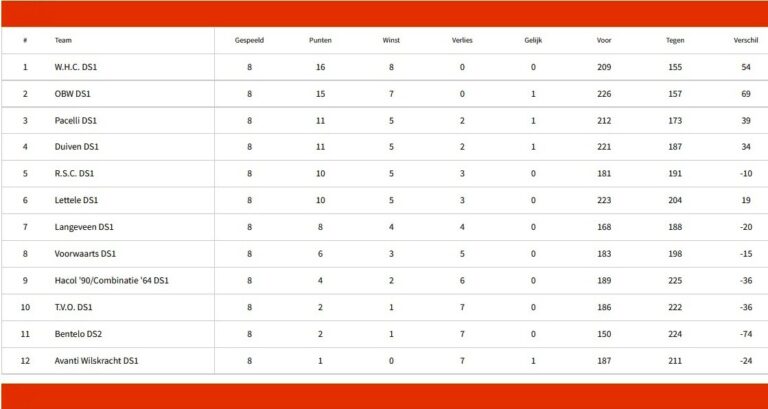 OBW, een wedstrijd die vast al enige tijd op het netvlies staat bij de speelsters van WHC 1! De spanning zal er op zitten zondag 14 00 uur in Zevenaar! Beide teams zijn nog ongeslagen alleen OBW heeft een wedstrijd gelijk gespeeld. Het verschil is dus 1 punt!