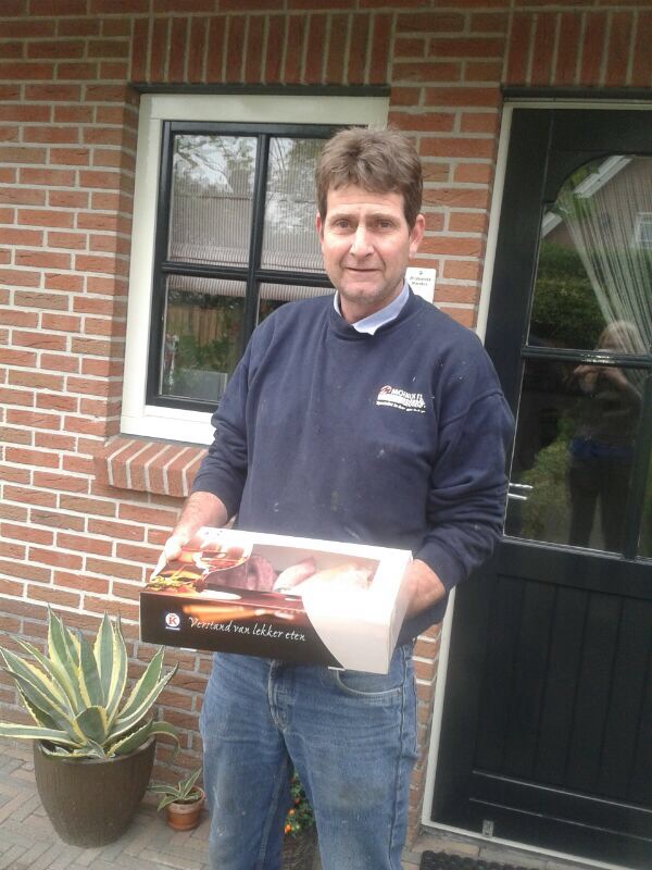De winnende deelnemers van de donateursactie werden afgelopen zaterdag verrast met een vleesschotel van Slagerij Brummelhuis.