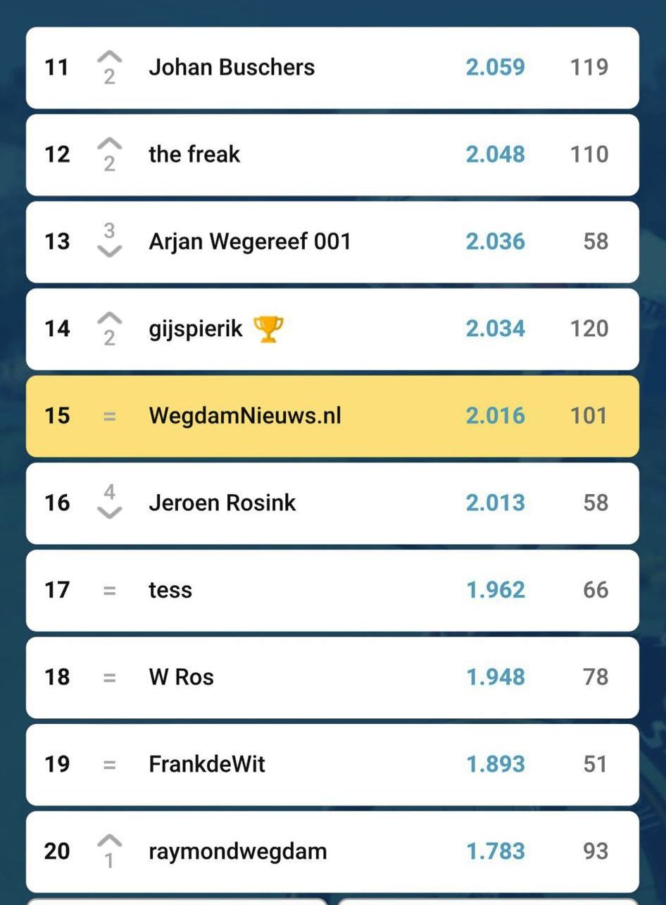 Hij is dan ook de riante koploper in de Wegdamnieuws Tour! Maar Mini Bennie, alias Thijs Blanken ligt op de loer en lijkt een geduchte tegensander waar rekening mee gehouden moet worden. Hij was de winnaar van 2022, op de laatste dag!