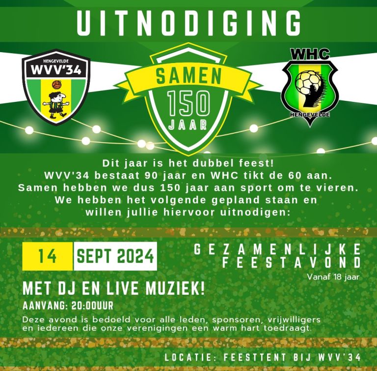 Ook was er aandacht voor de jeugd. Vanwege het jubileum krijgen alle jeugdteams, zowel uit- en thuiselftallen een patatje aangeboden door de club. Dit op de dag dat het grote feest in de tent wordt gevierd, waarvoor eenieder is uitgenodigd. WVV’34 viert het 90-jarig jubileum, WHC sluit ook aan en viert het 60-jarig jubileum.
