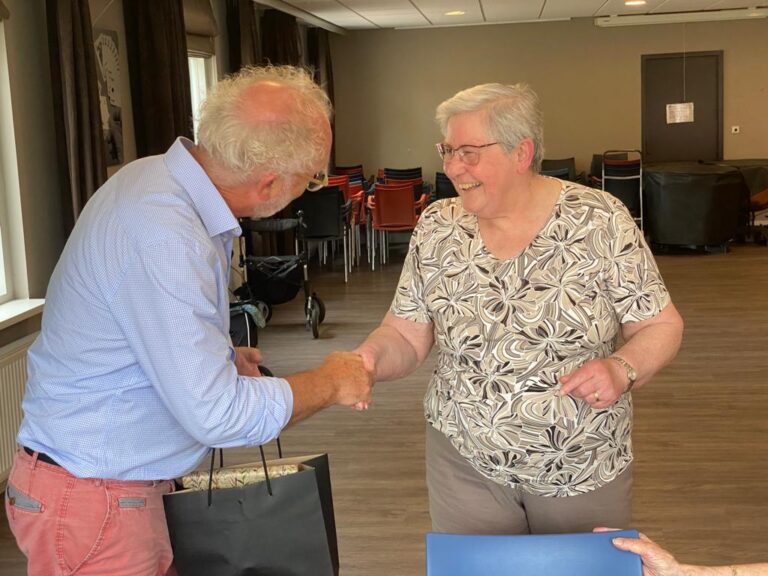 Daarnaast wordt ook de motoriek getraind. Het levende voorbeeld van iemand die er baat bij heeft gehad is Marietje Veldhuis, die binnenkort de 97 aantikt. Al vanaf het prille begin, 50 jaar geleden, is ze actief lid. Ook speelt de gezelligheid een belangrijke rol. Na afloop van de gym is er een kopje koffie en een glaasje van het een of het ander.