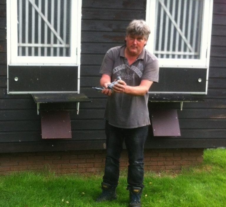 De eerste duif arriveerde om 9.32.21.op het hok van Ronald.