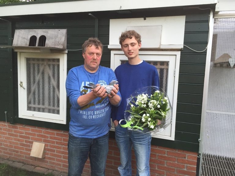 Vanwege het slechte weer van zaterdag 16 – 05 – 2015 werd de vlucht vanuit Peronne uitgesteld naar zondag. Een goede beslissing.Zondagochtend werden de duiven om 8.15 gelost in Peronne om vanuit daar de reis van ruim 362 km te maken. Met een flinke westen wind kwam de eerste duif met 86 km/u gemiddeld kwam de eerste duif dit keer aan op het hok van Rudie en Stan ten Thije.