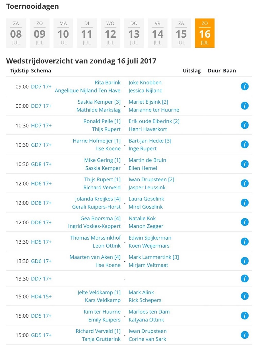 Schema 16 juli Tres Chic Hengevelde Open Dubbeltoernooi