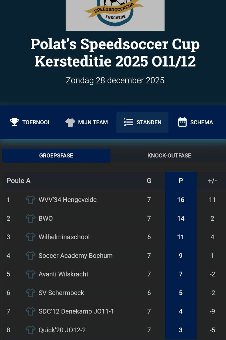 In de poulefase eindigde WVV’34 knap als eerste. In de kwartfinale werd vervolgens alles gegeven, maar daarin trok de tegenstander uiteindelijk aan het langste eind.