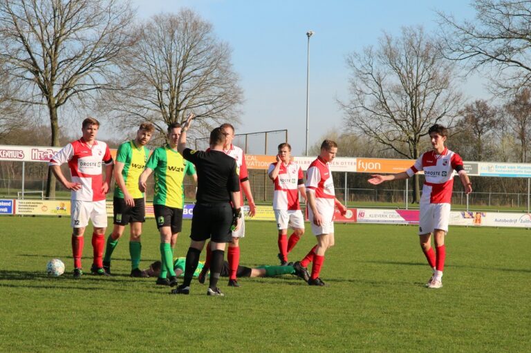 Vanaf het eerste moment was duidelijk dat het een geen hoogstaand duel zou gaan worden. Daar waar de Hengeveldenaren in het verleden nog wel eens ervoor kozen om het voetballend op te lossen, werd er vandaag besloten om niet alles voetballend op te lossen. DSVD kon en wilde ook niet anders. Zij schoten 90 minuten lang alles naar voren om vervolgens de beuk erin te gooien. Vanaf het moment dat Thomas Wegdam de 1-0 in de touwen knikte (Klik HIER voor de video) na zo’n 22 minuten, was al het voetbal verdwenen bij de 22 spelers op het veld. De bal kon door beide partijen geen moment worden rondgespeeld en vier keer overspelen naar elkaar was een unicum. Veel duels, kaarten en discussies met de scheidsrechter waren het gevolg.