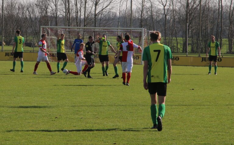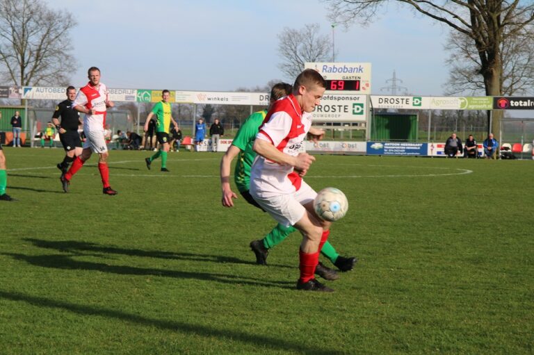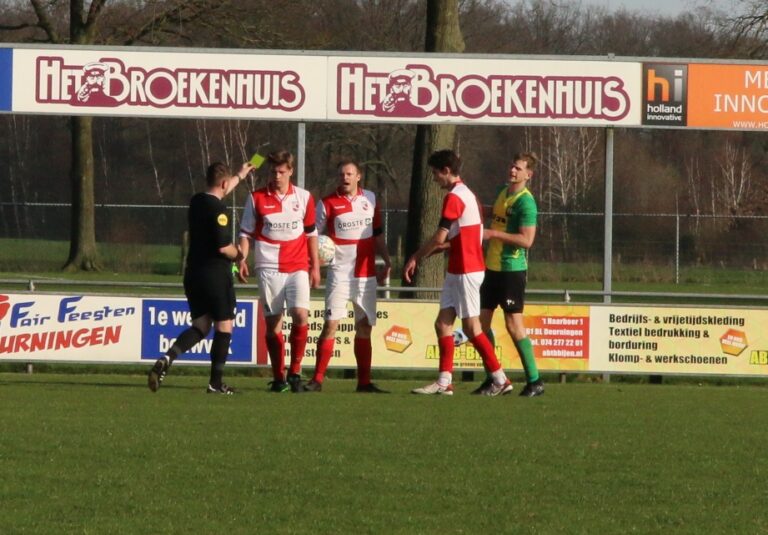 Vanaf het eerste moment was duidelijk dat het een geen hoogstaand duel zou gaan worden. Daar waar de Hengeveldenaren in het verleden nog wel eens ervoor kozen om het voetballend op te lossen, werd er vandaag besloten om niet alles voetballend op te lossen. DSVD kon en wilde ook niet anders. Zij schoten 90 minuten lang alles naar voren om vervolgens de beuk erin te gooien. Vanaf het moment dat Thomas Wegdam de 1-0 in de touwen knikte (Klik HIER voor de video) na zo’n 22 minuten, was al het voetbal verdwenen bij de 22 spelers op het veld. De bal kon door beide partijen geen moment worden rondgespeeld en vier keer overspelen naar elkaar was een unicum. Veel duels, kaarten en discussies met de scheidsrechter waren het gevolg.