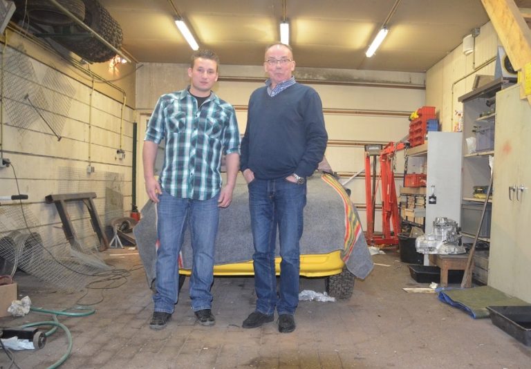 “De vier belangrijkste sponsoren zijn ook nog eens echte liefhebbers,Beweegpunt Hof van Twente, GK Installatietechniek, Twenko Koeltechniek, 2 Steps Ahead bv allen uit Hengevelde en Temmink Geluidsverhuur uit Neede. Wij waarderen deze mensen ook enorm, zonder sponsoren is deze sport echt niet mogelijk. Vooral nu je een stap hogerop gaat is het eisenpakket wat betreft de veiligheid eveneens een stap hoger. Daarbij moet je denken aan een bijvoorbeeld een brandwerende overall in plaats van een brandvertragende, dan praat je al snel over een bedrag van rond de 350 euro. De stoel moet worden aangepast, aan de auto worden veel meer eisen gesteld. Maar ik moet zeggen dat we allen zeer tevreden zijn met het eindresultaat en Pa en ik kunnen dan ook niet wachten om aanstaande zaterdag onze trots te presenteren in de feesttent bij de familie Broekkamp! De eerste wedstrijd is al op Paasmaandag 6 april dus het was echt de laatste mogelijkheid, komt allen zou ik zeggen!”