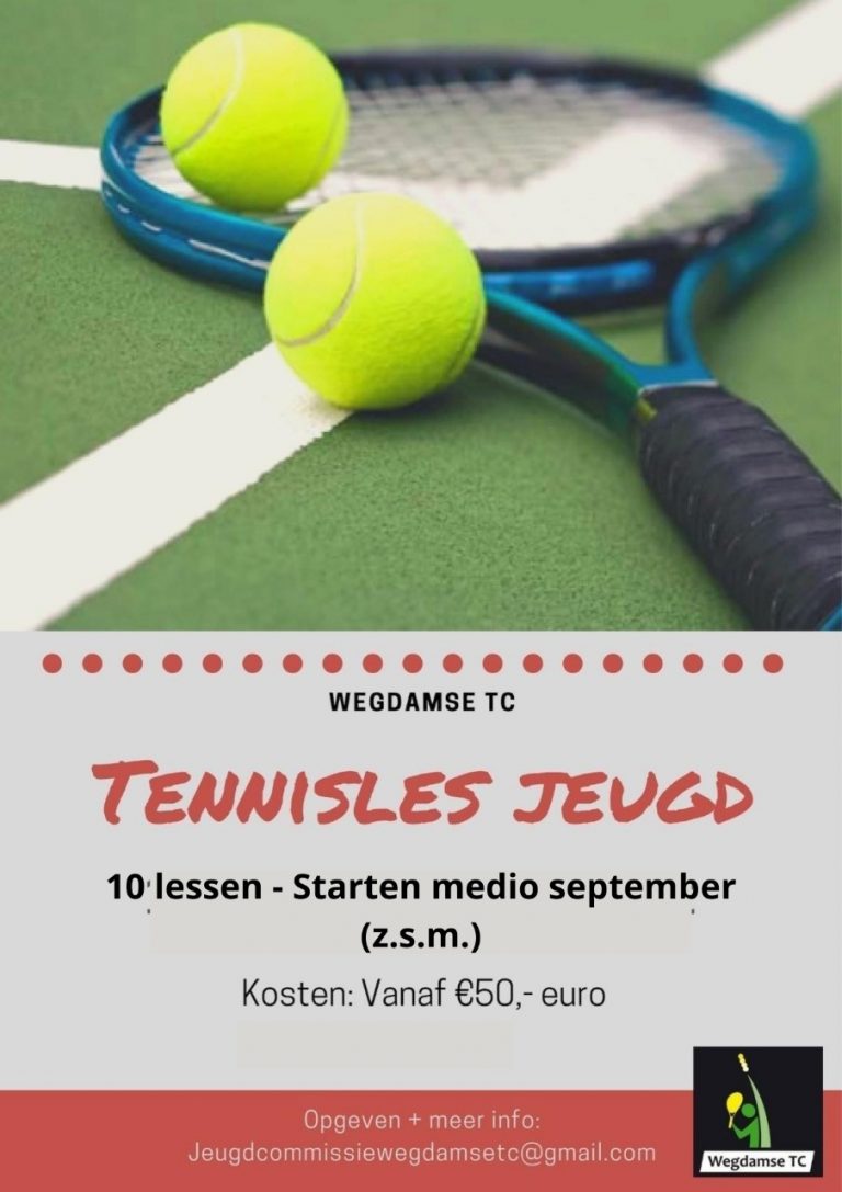 Vanaf half september starten de najaars-lessen voor de tennisjeugd weer. Je volgt hierbij een reeks van 10 lessen op woensdag of op vrijdag. Iedereen is welkom, want tijdens je eerste keer lessen ben je nog gratis lid! Opgeven kan t/m 13 september door een mailtje te sturen naar: [email protected]. Vermeld even je naam, leeftijd, voorkeursdag en met wie je samen in de groep zou willen.