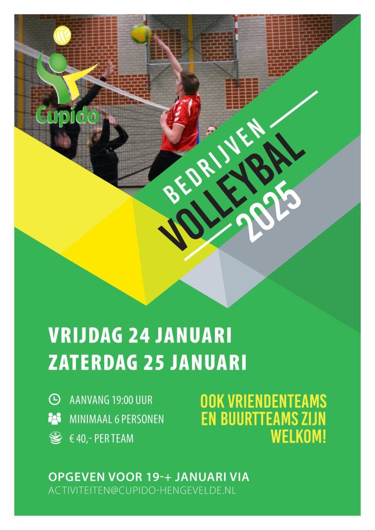 Volleybalvereniging Cupido uit Hengevelde organiseert alweer voor de 26ste keer het altijd gezellige bedrijvenvolleybaltoernooi! Het evenement vindt plaats in het laatste weekend van januari en is bedoeld voor bedrijven uit Hengevelde en de hele Hof van Twente. Ook buurt- en vriendenteams zijn van harte welkom om deel te nemen aan dit sportieve en gezellige toernooi.