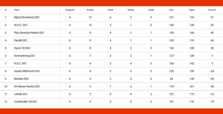Wil WHC daadwerkelijk strijden om de eerste plek, dan zal er eigenlijk niet verloren mogen worden! Hoe denkt trainer Egon Floors Nijhof/Broekland te bestrijden? Ze hebben namelijk 30 doelpunten meer gemaakt in 6 wedstrijden, dat lijkt veel: