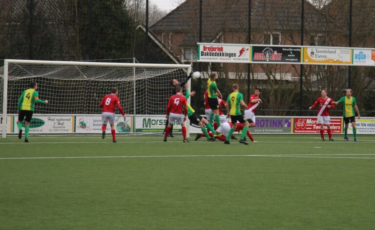 Alle zeilen moesten bij voor de ploeg van Niki Leferink om het vege lijf te redden, en dat lukte enigszins. Remi Leferink kopte twintig minuten voor tijd de gelijkmaker binnen. De thuisploeg ging nog op jacht naar de winnende, maar zover kwam het niet. Het bleef bij 2-2 waardoor de ploegen beiden met een punt van het veld stapten.
