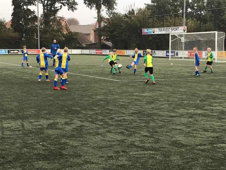 Dat het een bijzondere wedstrijd voor de jongens was was snel te merken. Iedereen was ruim op tijd aanwezig. de ouders, opa en oma’s en ooms en tantes waren in grote getallen aanwezig. De jongens hadden er zin in. Vrijwillige wissels waren er dan ook niet. Iedereen wou deze wedstrijd spelen en winnen en dat merkte Delden heel snel. Topaanvallers Rens Nijland en Lennon ten Thije wisten elkaar binnen een minuut te vinden en de eerste bal ging al tegen de touwen. 1-0. Gaandeweg de wedstrijd wist het middenveld, Stan ter Doest en Thijs Grefte door snel en fel druk zetten de slag daar te winnen. Elke opbouw werd snel en vakkundig de kop ingedrukt. Langzaam maar zeker werd de voorsprong uitgebouwd naar 5-0. Delden ging een andere speelstijl hanteren, de lange bal. maar hadden daar geen rekening gehouden met de top verdedigers van W.V.V.’34 Jo 9-1, Jurrian Slotman, Kay Leferink en Mick Hof. Elke bal of aanvaller die toch het middenveld overkwam werd snel weer terug gewerkt naar de vijandelijke helft. En de enkele keren dat Delden toch gevaarlijk werd kon het team vertrouwen op het keeperswerk van Siebe Tuinte.