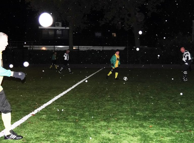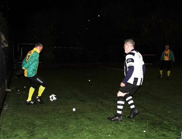 En dat alles met een heuse scheidsrechter, die wel floot bij te hoge ballen en lichamelijk contact. Iets wat doorgaans op de onderlinge partijtjes nog wel eens ‘vergeten’ wordt door het enthousiasme en de beleving.