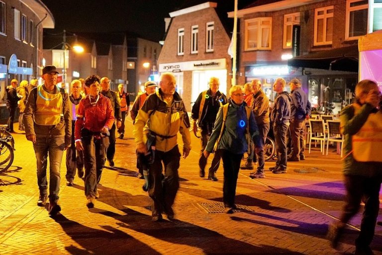Om 22:00 uur wordt er op de startknop gedrukt voor de deelnemers aan de 80, 42 en 21 kilometer. Het wandelpeloton zet zich in beweging naar de Veldmaat en keert nog één keer terug naar de Markt. Daarna doet de meute nogmaals de Veldmaat aan om vervolgens in het nachtelijk duister te verdwijnen richting Boekelo en Enschede. Belangrijk: het dragen van duidelijk zichtbare reflecterende kleding en/of accessoires is voor de nachtwandelaars verplicht! Doe dus een hesje aan of bevestig bandjes om de arm. Het gaat om je eigen veiligheid. Verder adviseert de organisatie uitdrukkelijk om een zaklamp mee te nemen.