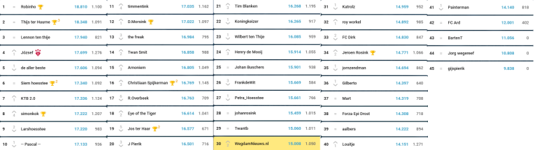 Robin Raanhuis won op gebied van het voorspellen van sport al alles wat er te winnen viel in Hengevelde. Of het nou gaat om fietsen of welke vorm van voetbal dan ook, de goedlachse Hengeveldenaar pakte de winst. Als leider bij het 2e elftal van WVV’34 gaat het even iets minder, maar ook daar houden we hoop! Robin staat nu ook weer fier bovenaan in de Wegdamnieuws Eredivisie.