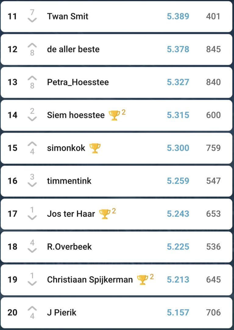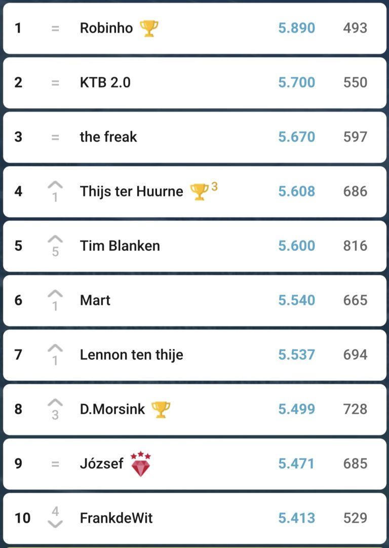 Robin Raanhuis op 1, Kevin ten Buuren op 2 en good old Gijs Eijsink die de top 3 compleet maakt.