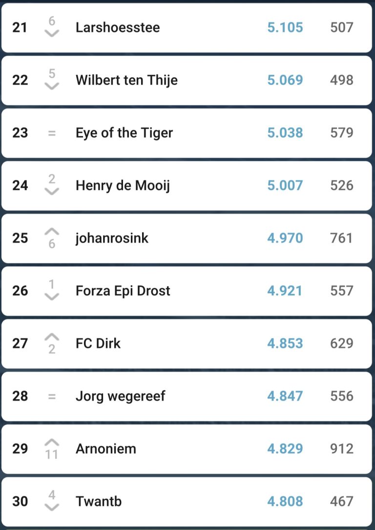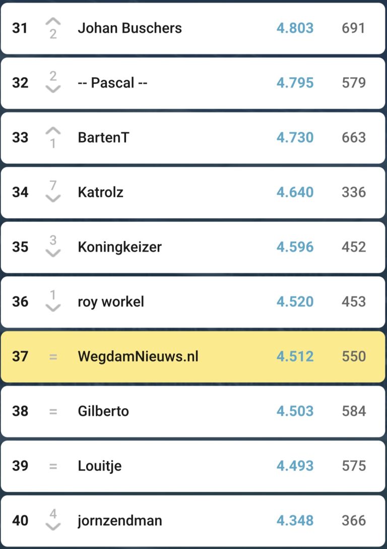 De Eredivisie is inmiddels 8 speelrondes onderweg, de eerste contouren zijn ook in de Wegdamnieuws Eredivisie zichtbaar met een mooie top 3.