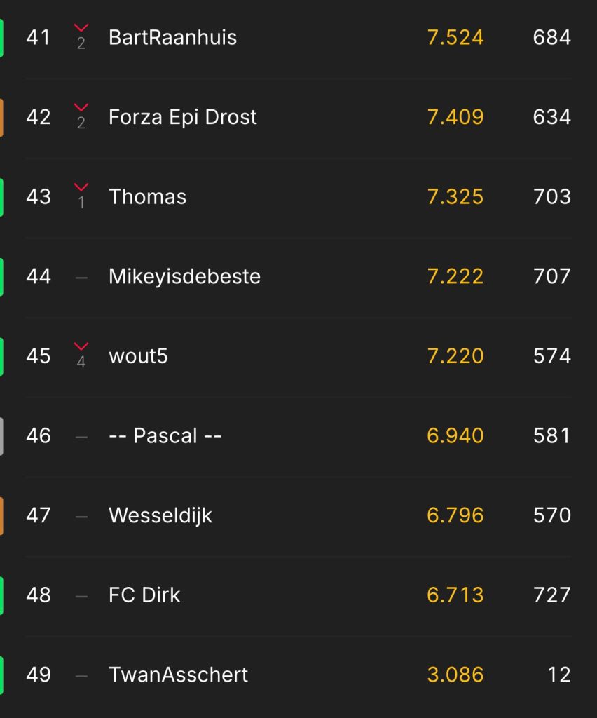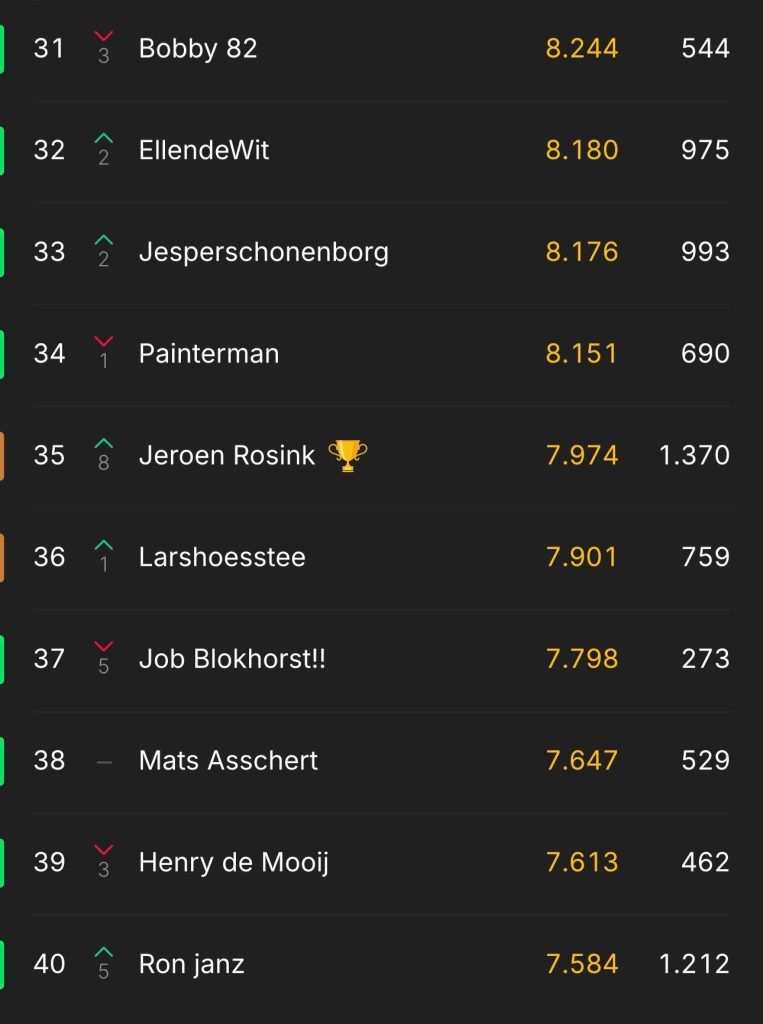 En dan hebben we natuurlijk ook nog Thomas Wegdam… Die mag nog wel even schakelen: hij staat momenteel op een zeer bescheiden 43e plek. Maar goed, het seizoen is nog lang, en wonderen zijn de wereld nog niet uit!
