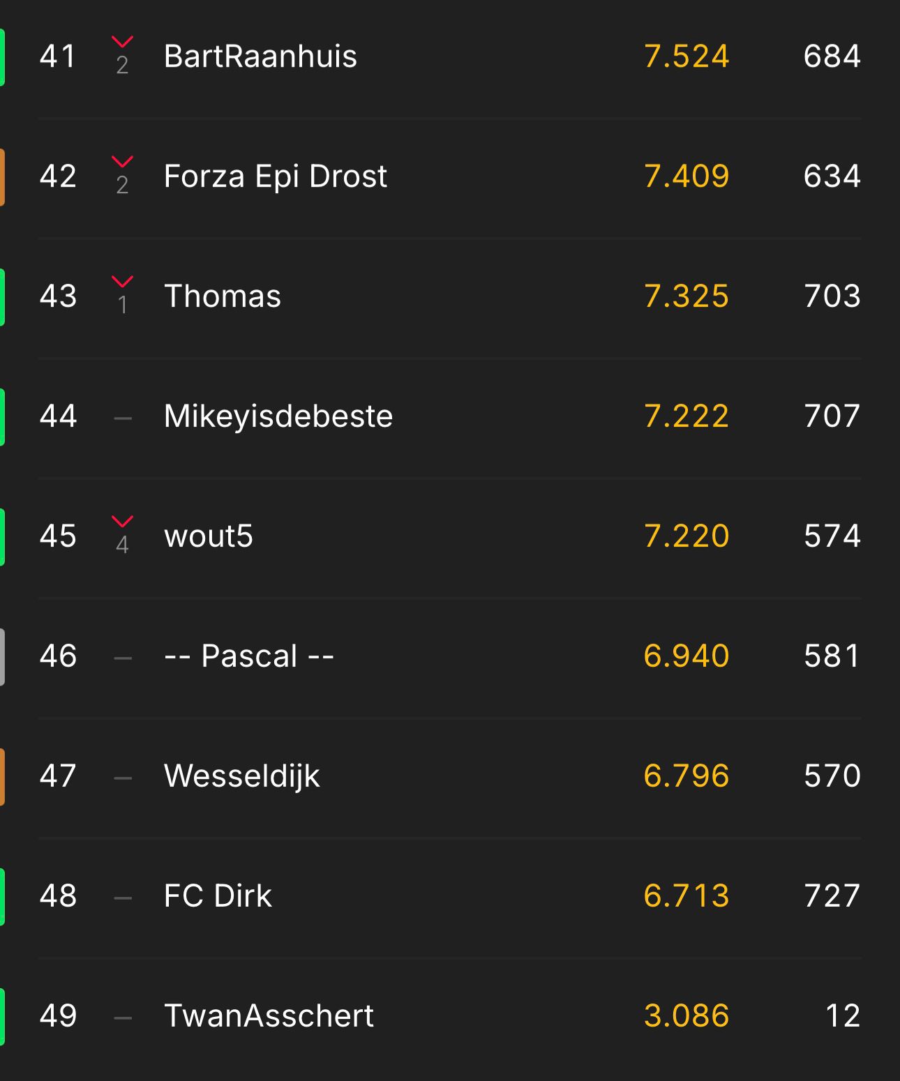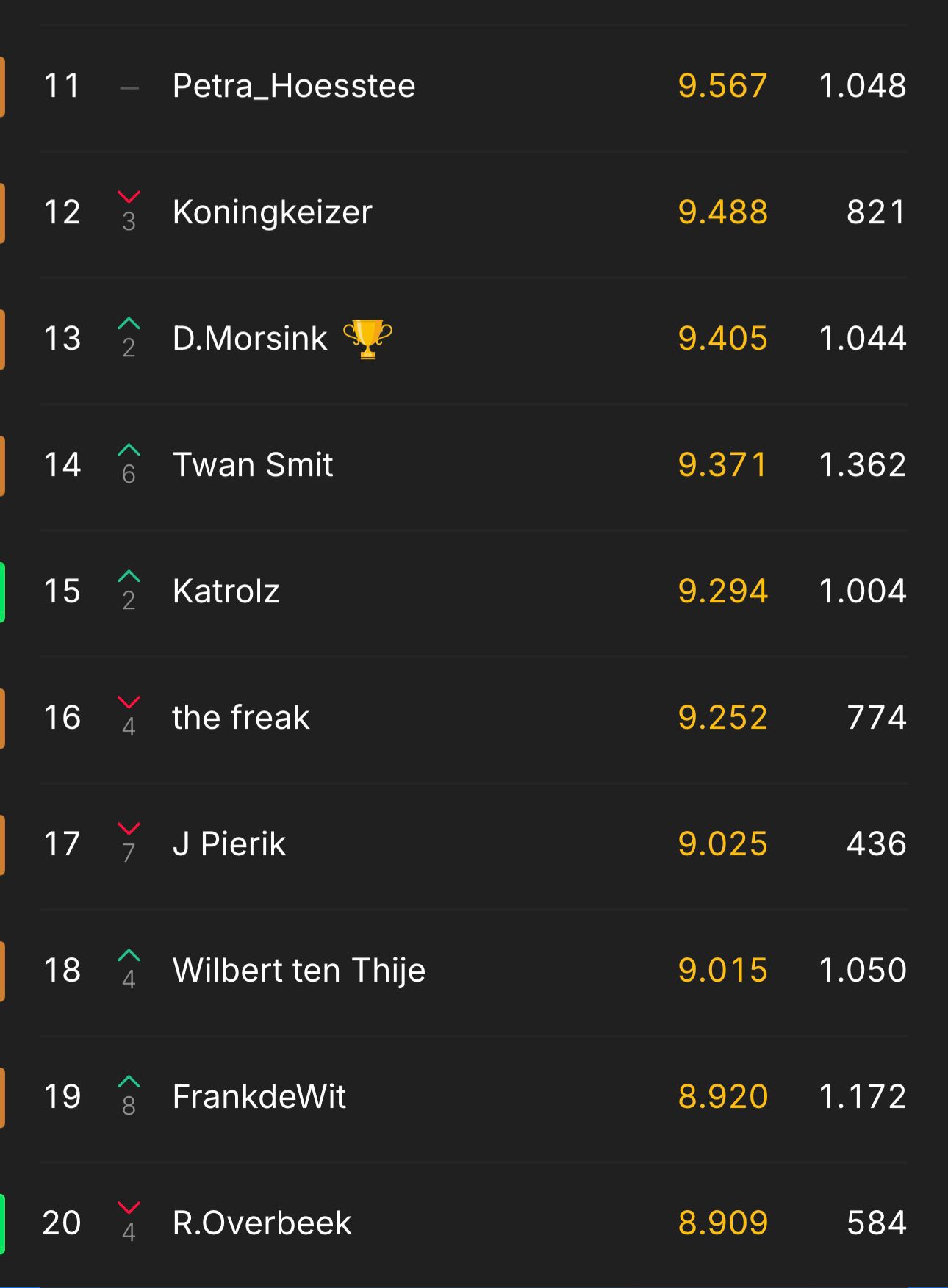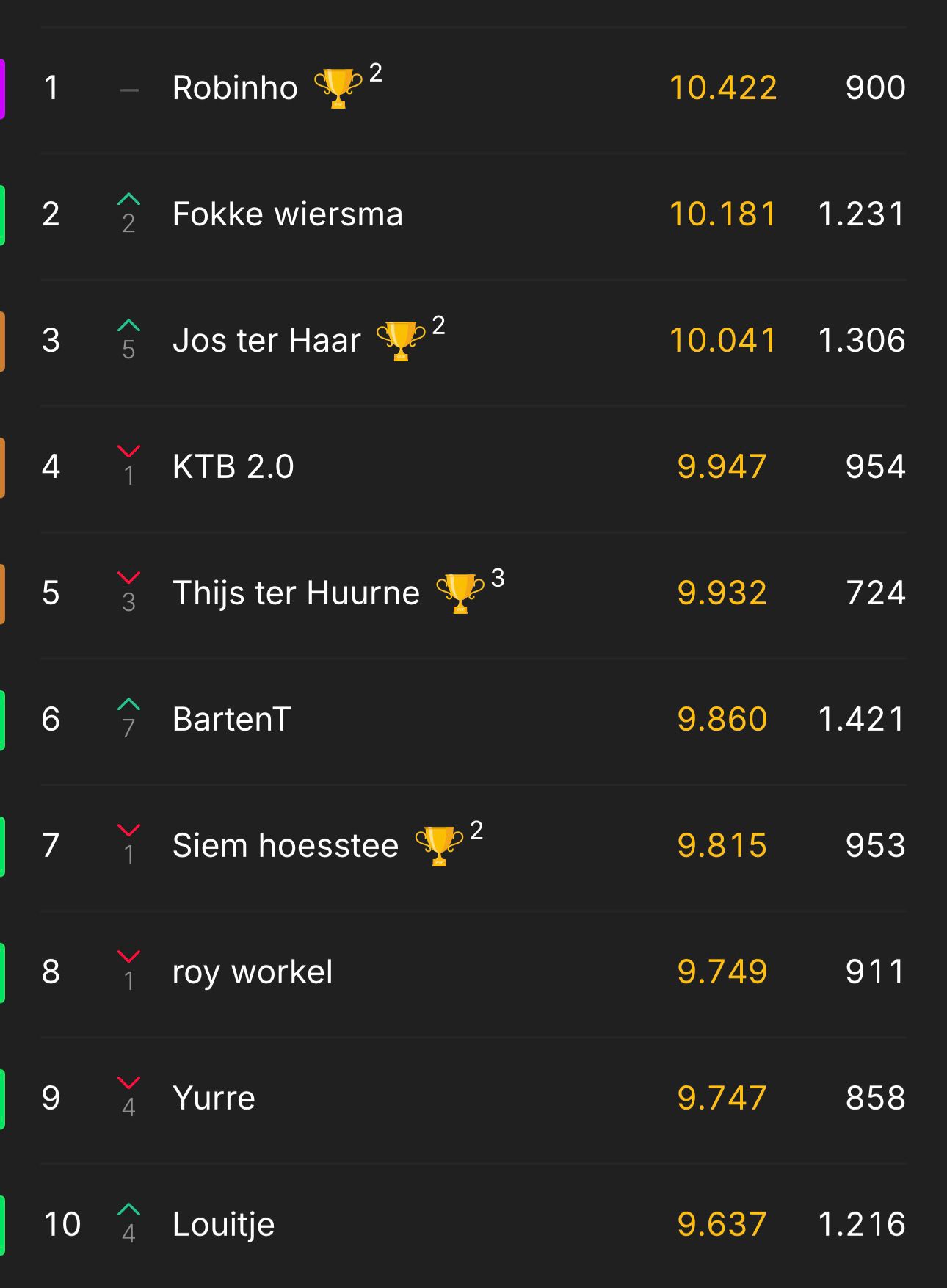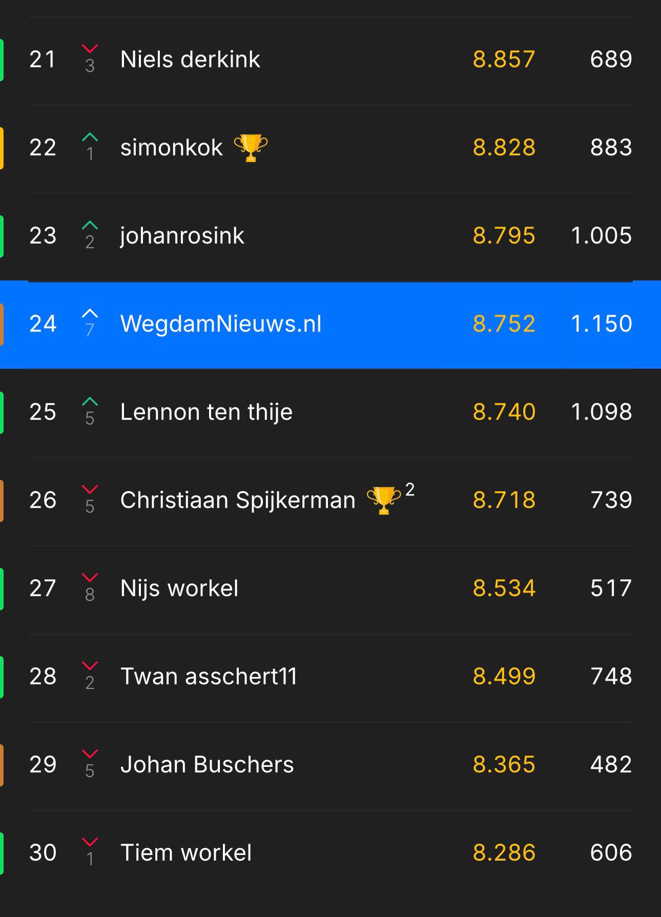 En dan hebben we natuurlijk ook nog Thomas Wegdam… Die mag nog wel even schakelen: hij staat momenteel op een zeer bescheiden 43e plek. Maar goed, het seizoen is nog lang, en wonderen zijn de wereld nog niet uit!