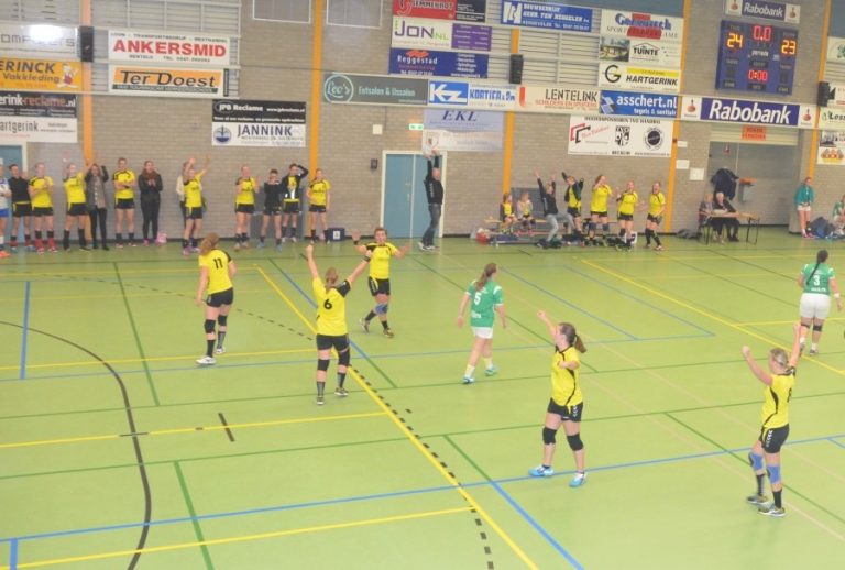 De ontlading was groot, de opluchting niet minder! Met nog 37 seconden op de klok leken de Wegdamse Handbaldames de wedstrijd uit te kunnen spelen, toch werd er balverlies geleden en de eindstand leek bepaald op 23-23. Er was echter nog 1 snelle aanval mogelijk in de laatste 15 seconden en laat die nou net voldoende zijn voor de eindzege! Loes ten Brummelhuis hield haar hoofd koel en knalde de winnende treffer fraai binnen! Na een 10-10 ruststand werd er dus toch nog aan het langste eind getrokken en met 24-23 gewonnen! Trainer Theo van der Aa: “Voor het in grote getale opgekomen publiek was het denk ik een spannende wedstrijd! Verdedigend hebben we goed gewerkt, het ging voortdurend gelijk op. Maar we hebben vandaag in ieder geval goede zaken gedaan!" Speelster Lieke Scholten: "Het was echt een super spannende wedstrijd, tot het laatste moment!"