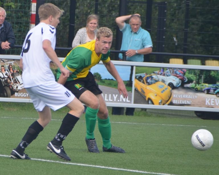 De eerste wedstrijd van de competitie tegen NEO uit Borne is geëindigd in 2-2 , een eindstand die de verhoudingen binnen de lijnen goed weergaf. Na 20 minuten kwam de tegenstander op voorsprong na een pass vanuit het midden. Vanaf de linkerflank volgde een scherpe voorzet die vervolgens van dichtbij werd binnengeschoten. Het antwoord kwam kort voor rust; Wouter Horstink werd weggestuurd door de goed spelende Stan Aarnink en vrij voor de doelverdediger wist hij het net te vinden. In de extra tijd van de eerste helft viel alsnog de 1-2 waarmee de groen gelen alsnog ontevreden richting kleedkamer gingen. Middenvelder Stan Aarnink: ”De eerste helft lieten we met vlagen een goed aanvallend spel zien, helaas door eigen fouten scoren zij twee keer in de eerste helft”.