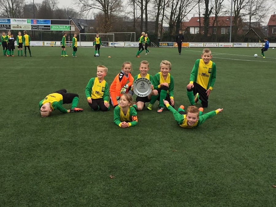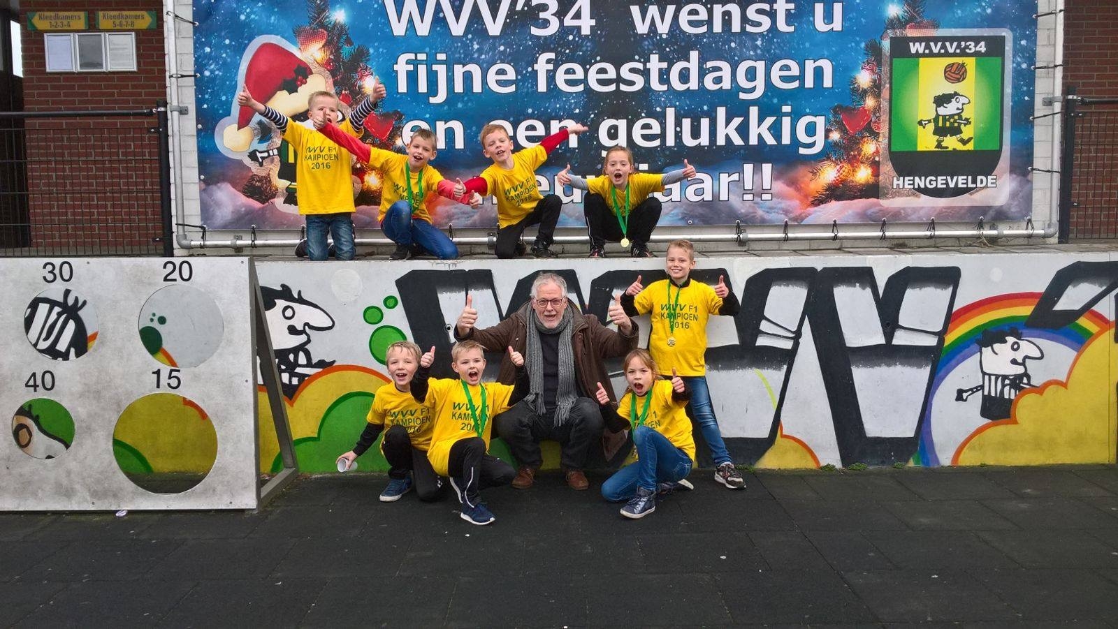 De voetbalsterren van WVV'34 zijn vanochtend op eigen veld kampioen geworden. In 11 wedstrijden wisten ze maarliefst 31 punten te behalen. Een 5-0 overwinning vanochtend liet dan ook niets aan het twijfal over, WVV'34 F1 is de terechte kampioen! Gefeliciteerd!