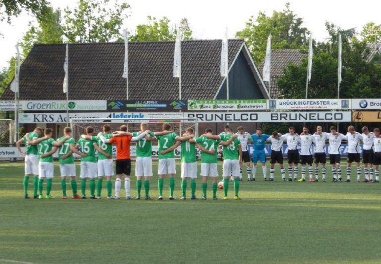 Foto boven: Voorafgaand aan de wedstrijd was er een minuut stilte ter nagedachtenis van de ondanks overleden Bennie Hummelink.
