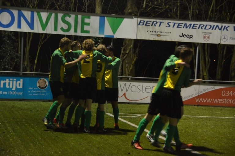 WVV'34 heeft vanavond bijna voor een enorme verrassing gezorgd. (KLIK HIER VOOR HET FOTOALBUM) Na 90 minuten stond het tegen FC Lienden 1-1. In de strafschoppenserie was de landskampioen van de amateurs met 4-3 te sterk. Bas Assink maakte na 54 minuten de 0-1, de vreugde was groot, ( Zie foto boven) een stunt leek in de maak. Ware het niet Lienden in de 88e minuut 1-1 maakte, waarop strafschoppen volgden. In de warming up maakte Lienden al indruk op de meegereisde Hengeveldse supporters, maar in de eerste helft bleef WVV'34 relatief eenvoudig op de been en kreeg het zowaar enkele goede mogelijkheden via Wessel Ziethof (al na 2 minuten), Hamoudi Jaafil en Stan Aarnink. Verder dan een bal op de paal en enkele schoten uit de tweede lijn kwam de tegenstander uit de Betuwe niet. Zij voetbalden wel beter, technisch en fysiek had het team uit de Topklasse duidelijk meer in huis. Des te knap was het dat WVV'34 het in de eerste 45 minuten op 0-0 wist te houden. De enige gele kaart in de eerste helft was ook voor Lienden doordat ze Hamoudi Jaafil de vrije doorgang richting het doel beletten. (Na rust kregen ze overigens nogmaals geel, bij WVV'34 kreeg Gijs Pierik geel.) In de tweede helft bleef WVV'34 relatief eenvoudig op de been. Sterker nog, het nam brutaal de leiding! Wouter Horstink werd diep gestuurd en strandde op de doelman. In de rebound was het Bas Assink die fraai met links wist af te ronden.