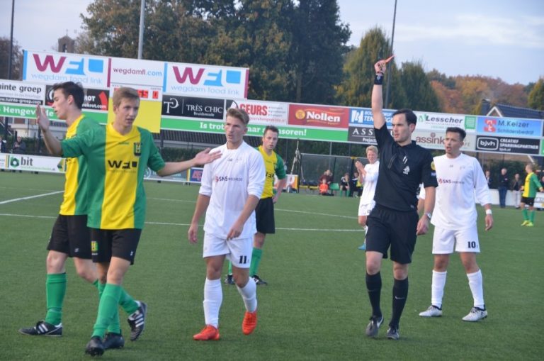 WVV heeft vandaag in een wedstrijd, die ontsierd werd door gele en rode kaarten, in de slotfase het deksel op de neus gekregen. De gehavende ploeg leed thuis een 1-0 nederlaag tegen het Enschedese Victoria'28. Het was onnodig, daar WVV'34 vooral in de tweede helft bij vlagen de bovenliggende partij was en in deze fase nagenoeg niets weggaf. De vlam ging in de pan na de rode kaart voor een Enschedeër. Amper twee minuten later gebeurde aan Hengeveldse zijde hetzelfde met Jesse Beukert, waardoor het tien tegen tien werd. Rechterverdediger Thijs Assink: ” Dat de tegengoal zo laat valt is wel extra zuur. Voor de rest moeten we het positieve eruit halen en weer gauw kijken naar volgende week, want we hebben keihard gewerkt met z'n allen. Victoria had de eerste helft voetballend licht de overhand, wij de tweede. De afronding moet nog scherper”.
