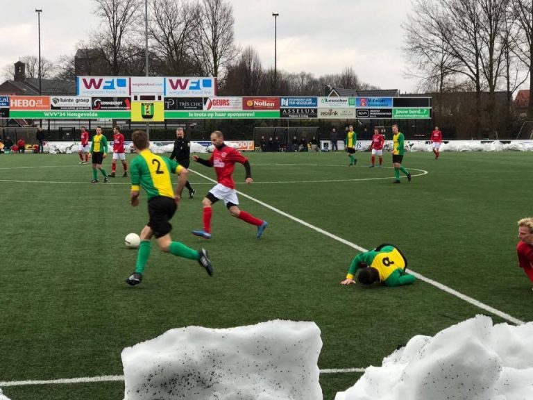 WVV'34 heeft vandaag zelfvertrouwen getankt met een 5-2 overwinning op buurman Twenthe Goor. Na een turbulente openingsfase waar de groen gelen twee keer werden weg gecounterd na balverlies op het middenveld pakte WVV'34 de draad op. Voor rust waren het Thijs Assink die na een fraaie actie van Hamoudi Jaafil van dichtbij afrondde en Stan Aarnink die de ruststand op 2-2 bepaalden. (Klik HIER voor de video van de 2-2). Na rust was het enkel WVV'34 dat de klok sloeg.