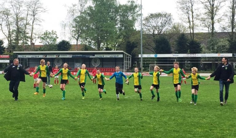 Met een knaller van 2-9 als afsluiter bij het Hengelose Achilles’12 zijn de pupillen van de Wegdamse Voetbal Vereniging de terechte kampioen in de 5e klasse! En dat al op een wedstrijd voor het einde van de competitie! De mannen mogen komende zaterdag dus als kampioen richting buurman Bentelo, kan het nog mooier! Het feest werd gevierd in prachtige kampioensshirts! Zie foto hieronder. KLIK HIER VOOR DE RIT OP DE PLATTE WAGEN