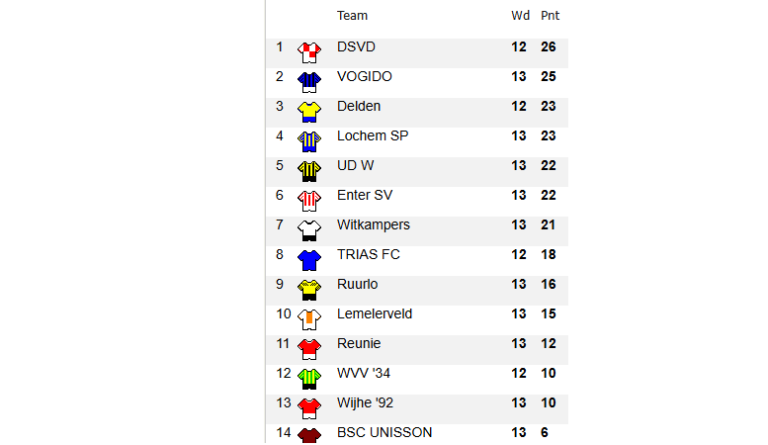 “Na de winterstop hebben we ons kunnen meten met ploegen uit de bovenste regionen van de competitie (Enter 6e, UD Weerselo 5e en Delden 3e). We hebben in deze drie wedstrijden nog niet verloren, maar helaas ook nog niet gewonnen. Tegen Enter toonden we veerkracht door een 0-2 achterstand in de slotfase om te buigen naar 2-2. Tegen UD Weerselo moesten we uiteindelijk genoegen nemen met een punt.