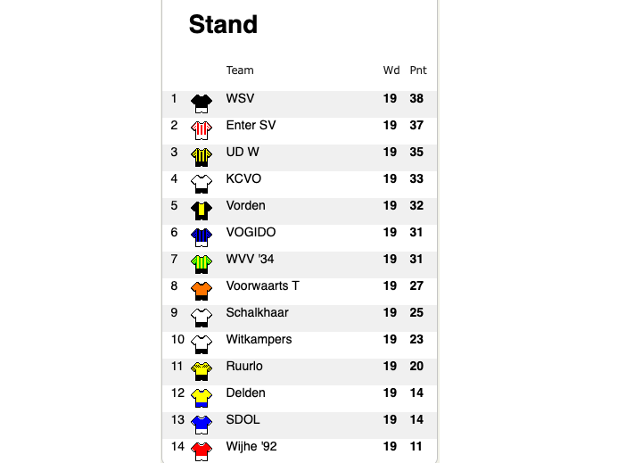 WVV’34 neemt het zondag opnieuw op tegen Witkampers en wil de goede lijn van de eerdere 1-0 overwinning doortrekken, waarin de ploeg duidelijk de bovenliggende partij was en Randy Smit bij zijn rentree direct het verschil maakte. Net als toen wordt verwacht dat WVV’34 het initiatief neemt en Witkampers op de counter speelt, waarbij het voor de groen-gelen vooral zaak is om het overwicht sneller om te zetten in doelpunten. Met een solide defensie, waarin ook Tom Pierik een belangrijke rol speelt, ligt er opnieuw een goede kans om de drie punten in Hengevelde te houden.