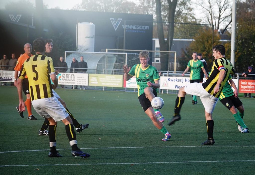 Opvallend was dat diezelfde Pierik zich ook aan de andere kant liet zien: met scherpe passes over de laatste linie zette hij onder andere Bas Derkink en Lars Aarnink vrij voor de goal, maar zij wisten het net niet te vinden.