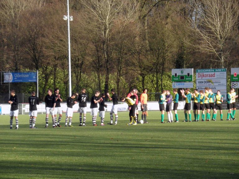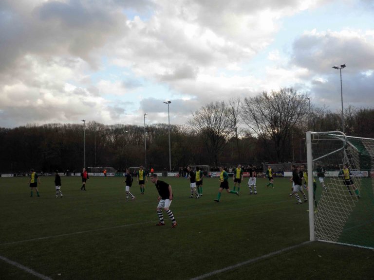 WVV’34 heeft vanmiddag geschiedenis geschreven. In een beladen duel werd SML verslagen met 2-3. Rob Pierik boog een 2-1 achterstand om in een 2-3 voorsprong. Zijn twee treffers bleken voldoende voor de eerste periode in de 3e klasse ooit voor de Hengeveldenaren. In de eerste helft was SML de bovenliggende partij, maar kon niet in kansen uitdrukken. Wel kwam SML al binnen 3 minuten op een 1-0 voorsprong. De eerste pannenkoeken bleken voor de kinderen, want WVV’34 toonde veerkracht en vlak voor rust kopte Gijs Pierik de 1-1 binnen. Hier haalde de Hengeveldse ploeg moed uit, en de 2e helft werd er ook uitstekend gevoetbald door de groengelen. Het niveau werd zichtbaar hoger en Hengevelde kreeg veel kansen. Tegen de verhouding in kwam SML opnieuw op voorsprong. Met een lobje werd doelman Assink verschalkt. Opnieuw kwam WVV’34 terug, Rob Pierik scoorde vanuit een voorzet de 2-2. Niet veel later kon dezelfde Pierik vrij doorlopen vanaf het middenveld waarop hij de winnende treffer in de touwen joeg. SML kreeg nog een rode kaart (twee keer geel), gescoord werd er niet meer. De teleurstelling bij SML was groot. Mede doordat ze zich enkele weken terug al rijk rekenden aangezien ze de periode binnen dachten te hebben. Hieronder enkele foto’s.