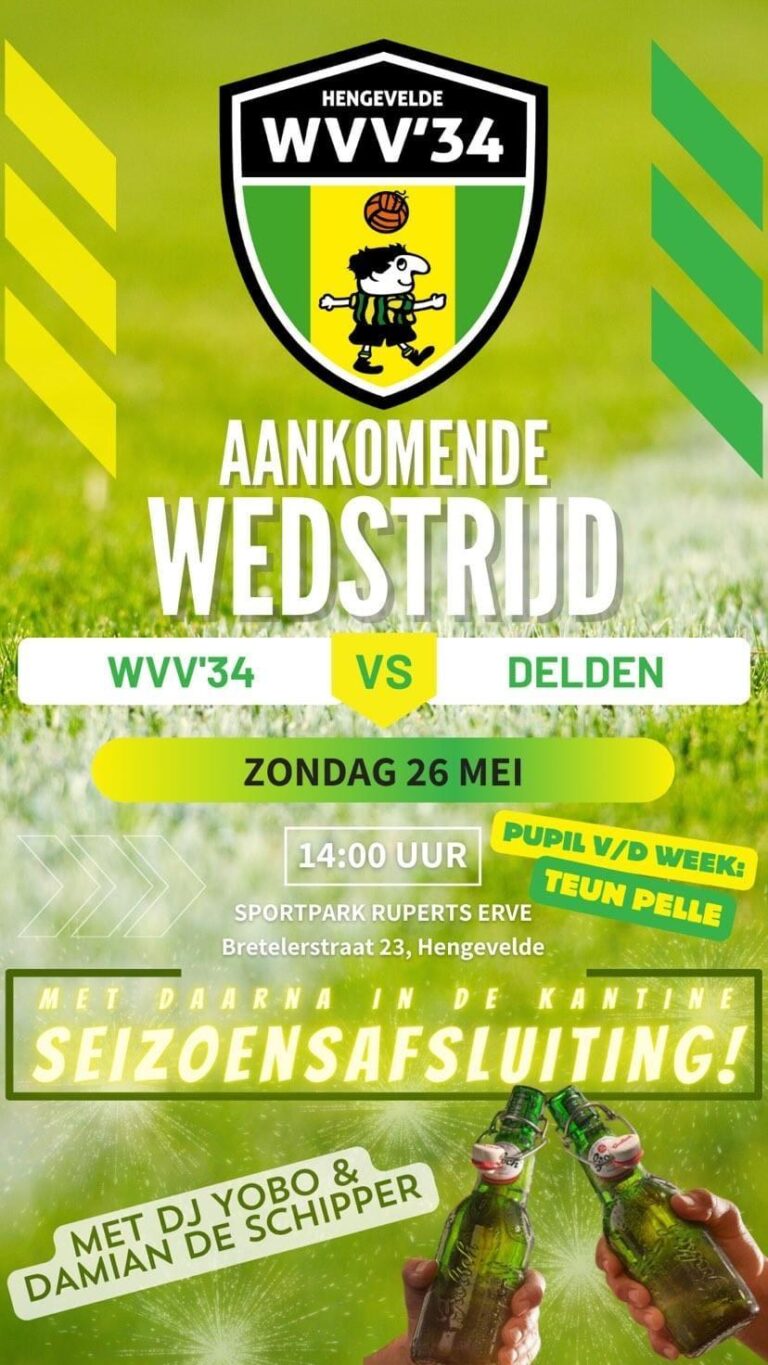 Na de wedstrijd hebben we de seizoen afsluiting in de kantine met muziek van DJ YOBO en een optreden van zanger Damian de Schipper. Het belooft een feestelijke middag te worden die je niet wilt missen!