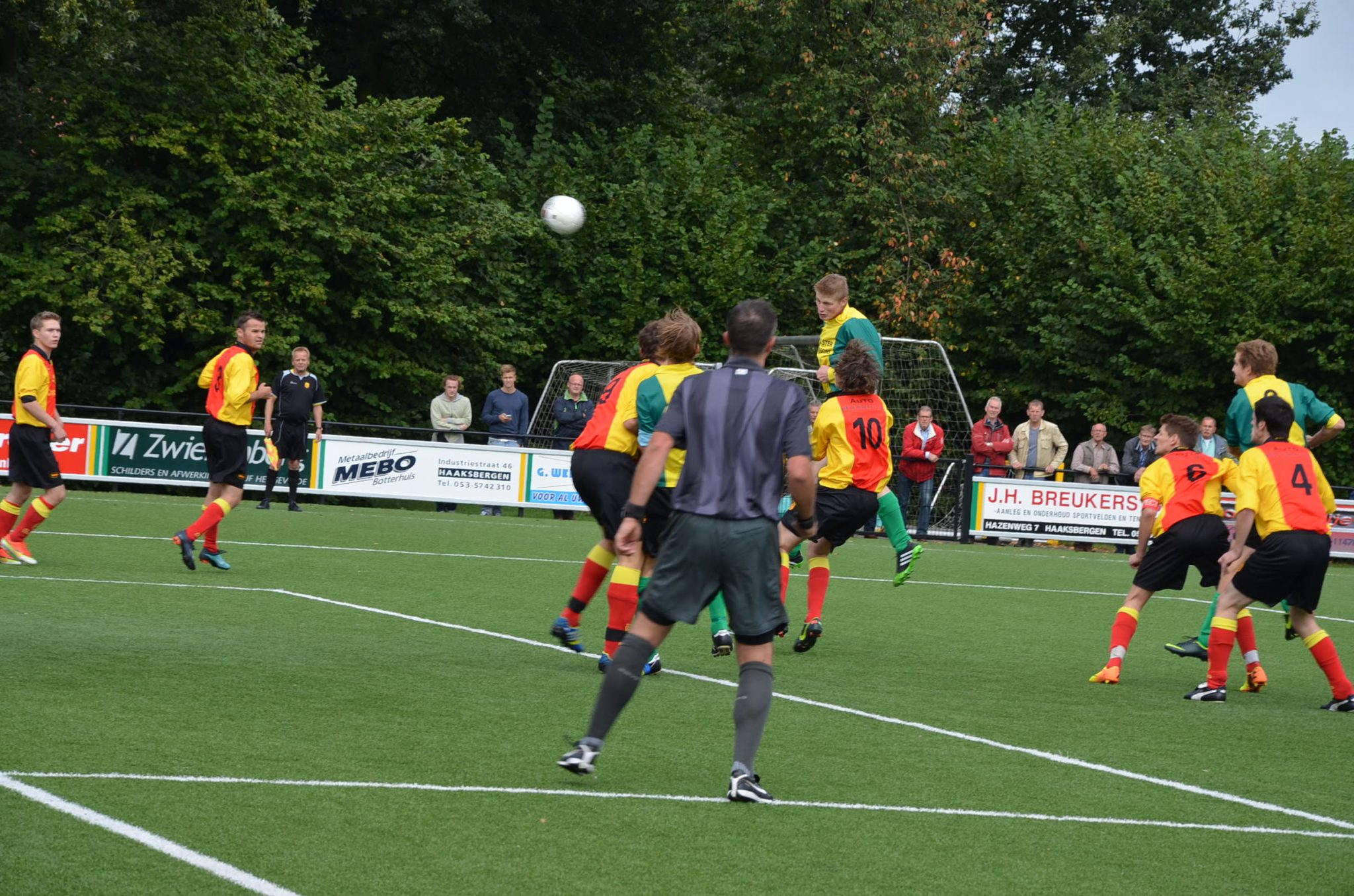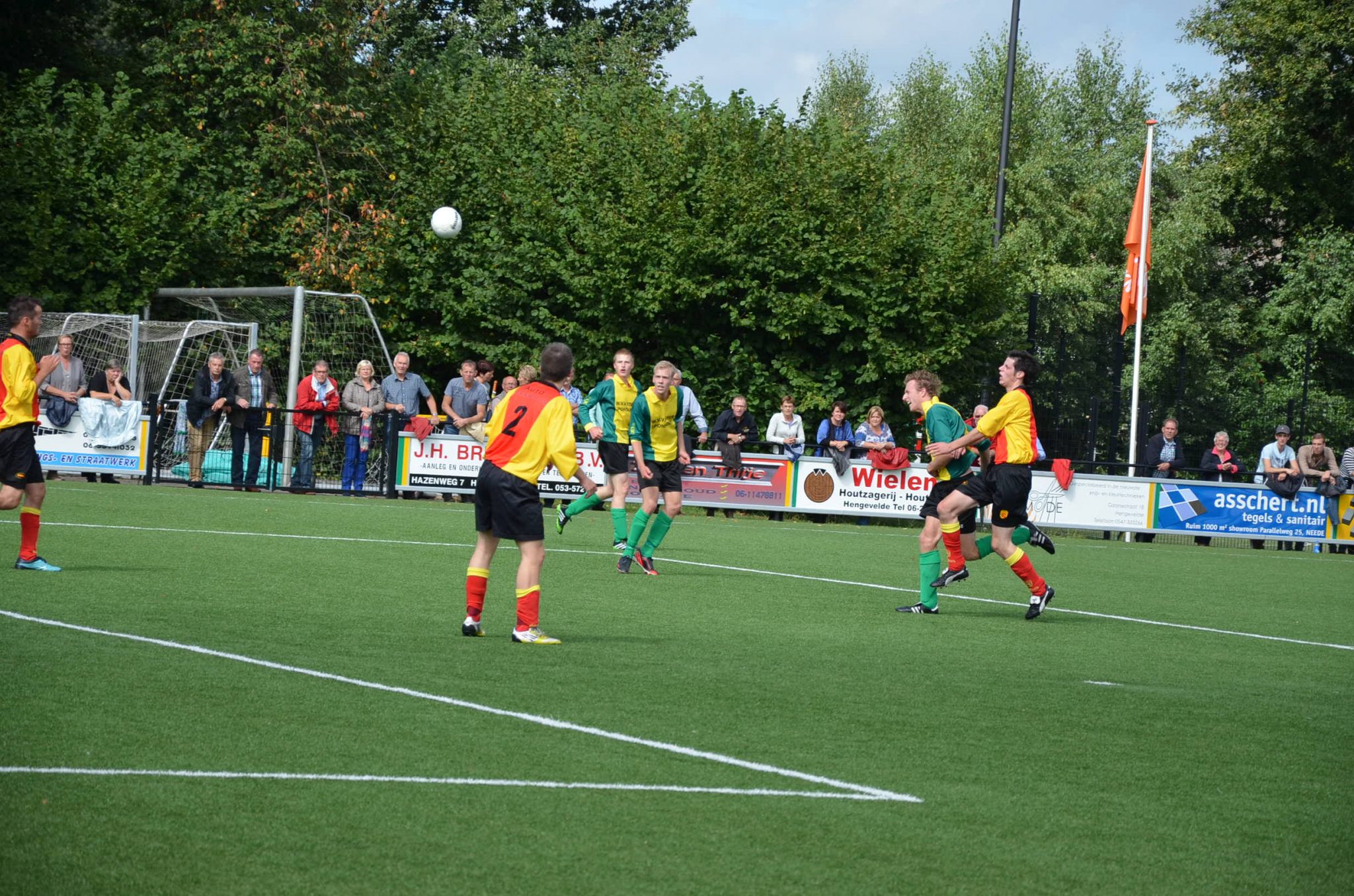 Na de 1 minuut stilte voor het overleden erelid Jan Stegeman ging WVV'34 dan eindelijk, onder toeziend oog van de camera van TV Oost, van start in de tweede klasse, en hoe! Al in de vierde minuut was het Rob Pierik die vanuit een cornerbal raak kopte (zie foto). De Hengeveldenaren behielden het initiatief in de openingsfase. Na zo'n 20 minuten kroop het fysieke STEVO enigzins uit zijn schulp en wist via enkele hoge ballen vanaf de zijkant gevaar te stichten bij goed keepende Wouter Assink.